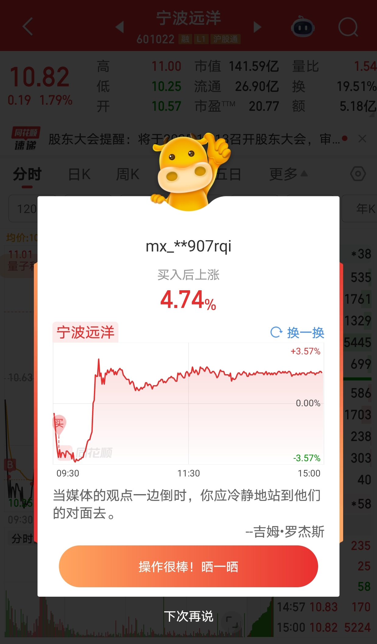 小手一抖,5个点到手,嘻嘻嘻昨天清仓跑路,今早水下抄底老实说,我对宁波远洋毫无研