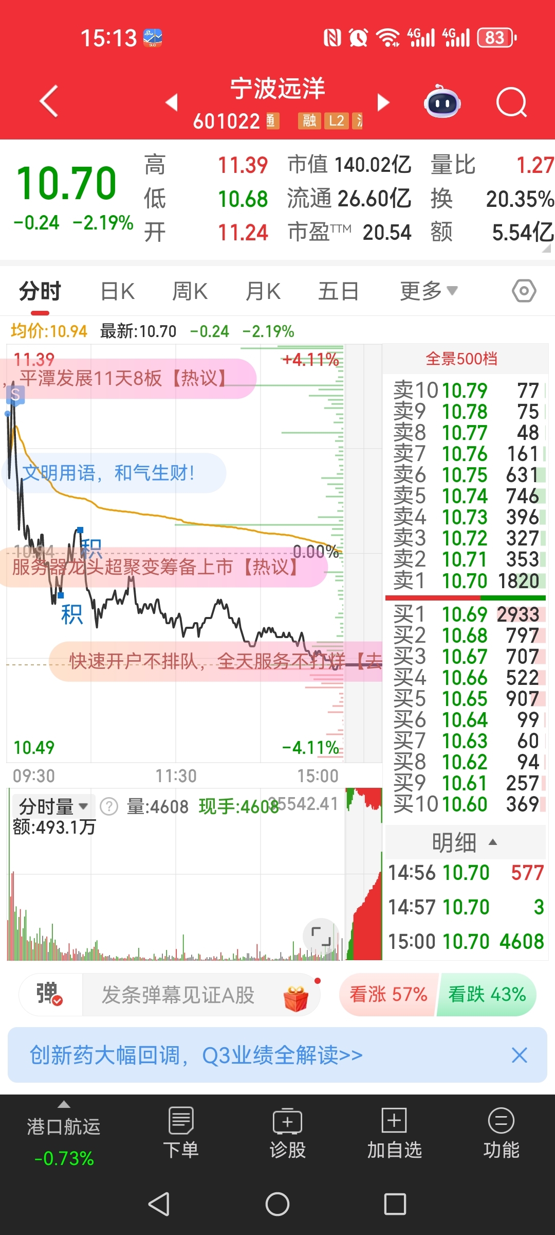 $宁波远洋(SH601022)$ 祖训,利好高开必走