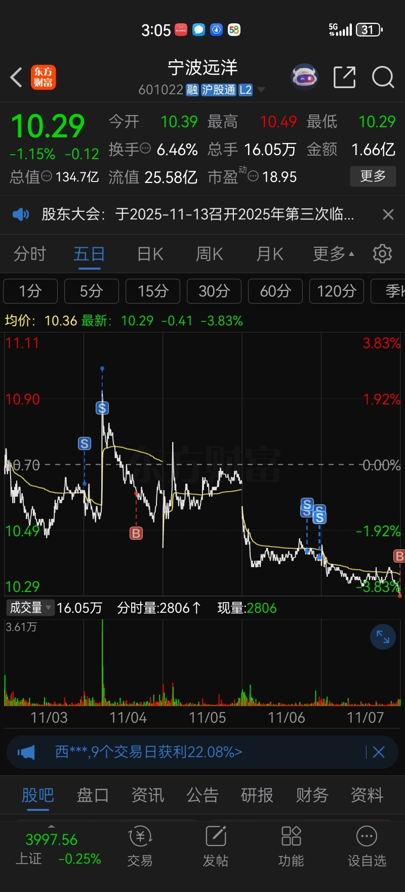 $宁波远洋(SH601022)$ 捡不回来就继续等待急跌在买回来