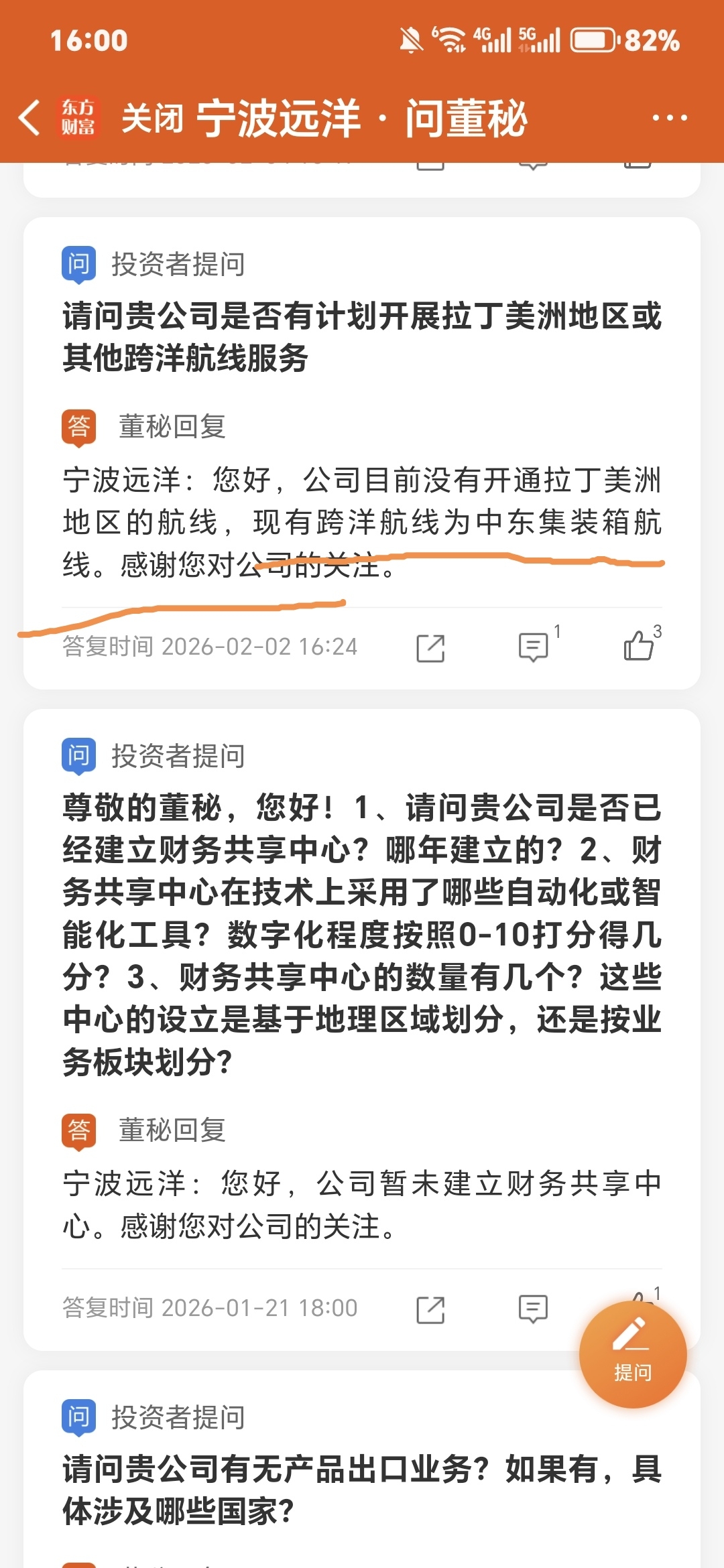 宁波远洋:中东航线也要经过霍尔木兹海峡。人家涨价,你不涨吗?