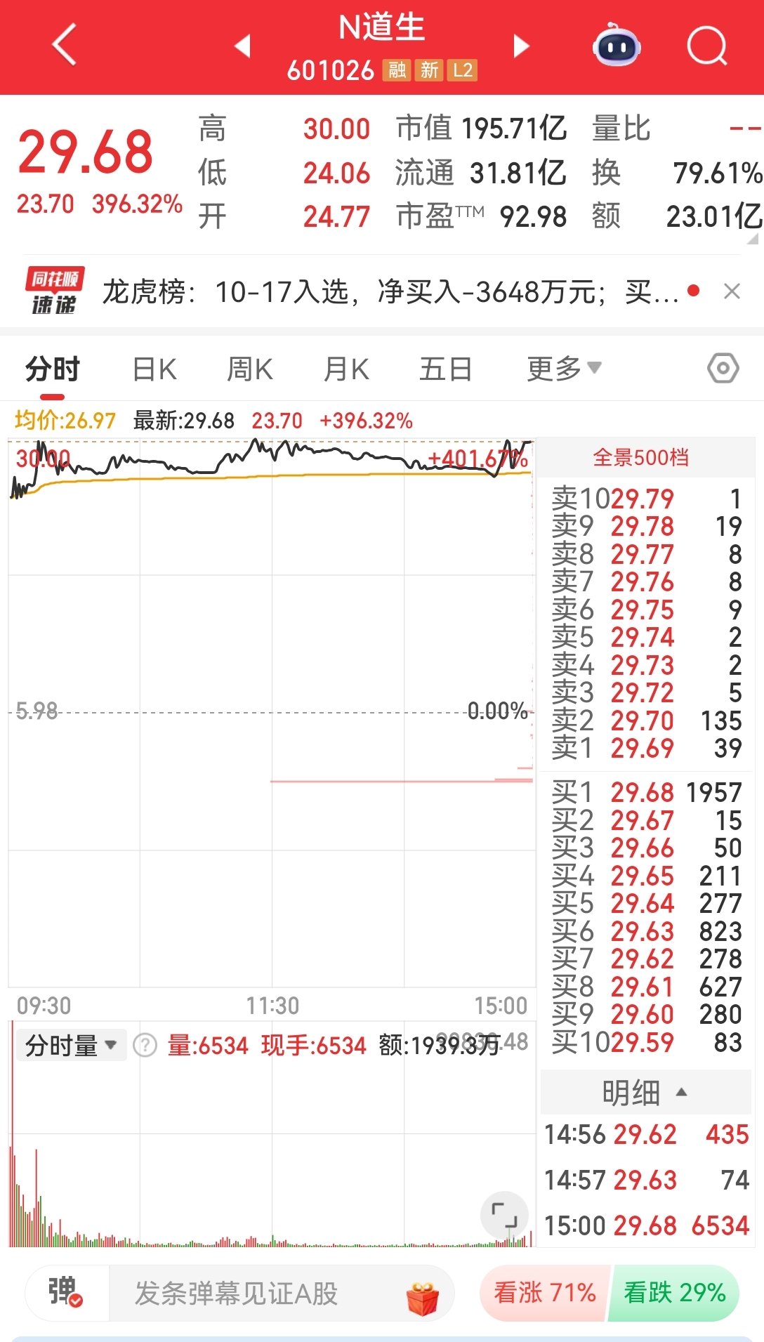 这票子全天价格几乎维持在均线以上,尾盘更是直接上攻,从短线分时看,这是非常强悍的