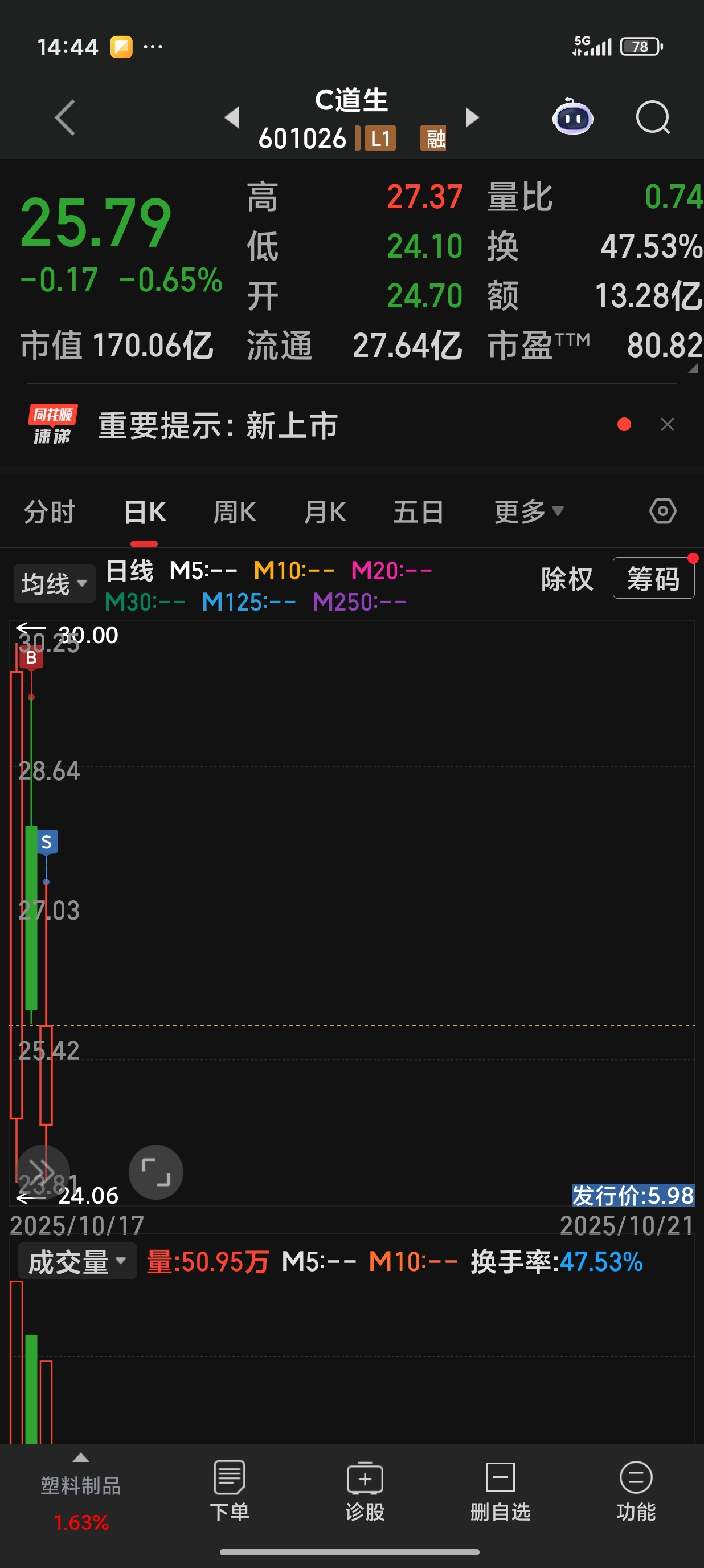 $C道生(SH601026)$ 赚包烟钱,LJ股,拜拜咯