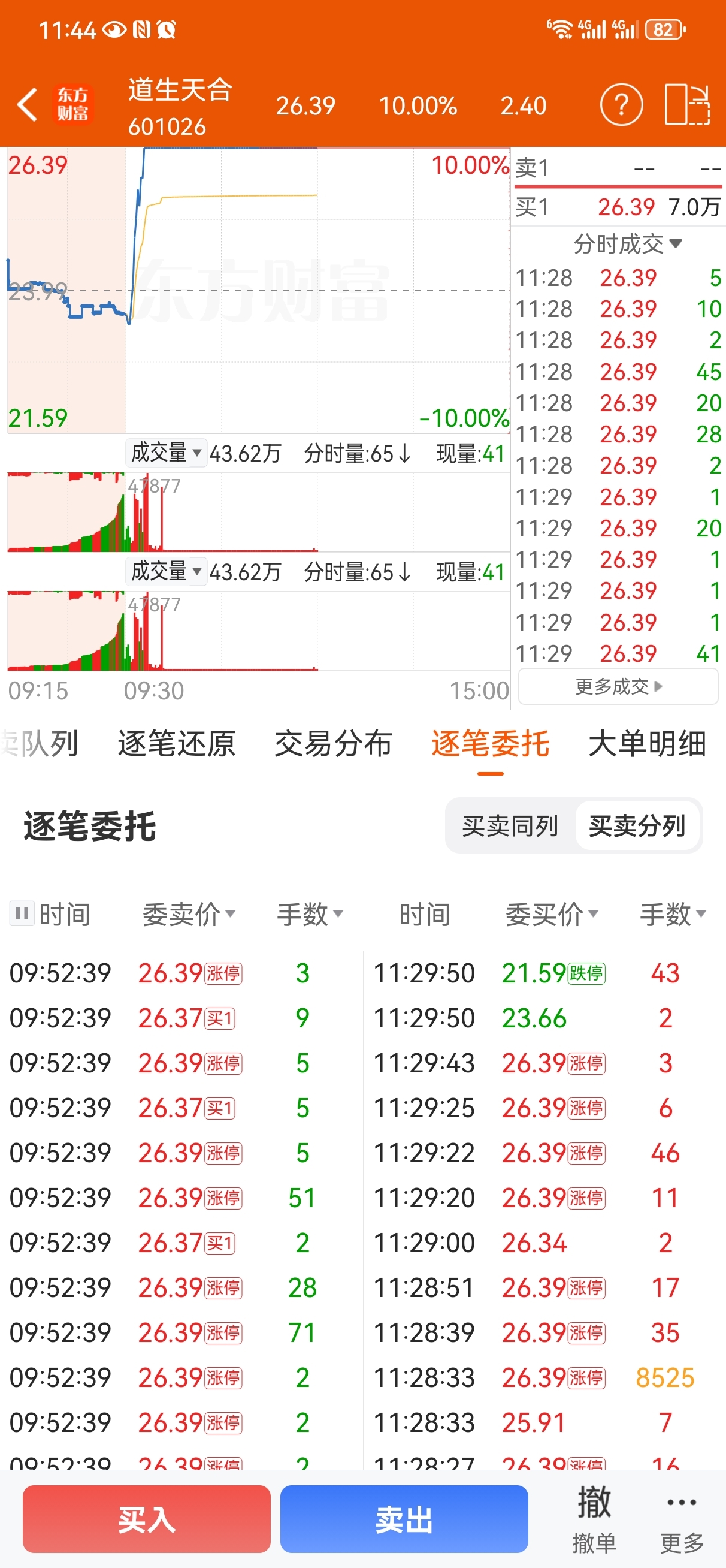 $道生天合(SH601026)$ 为什么逐笔委托里面卖单不更新呢?请大神指点指点。