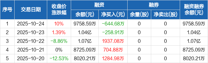 道生天合:融资净偿还644.68万元,融资余额9758.59万元(10-24)