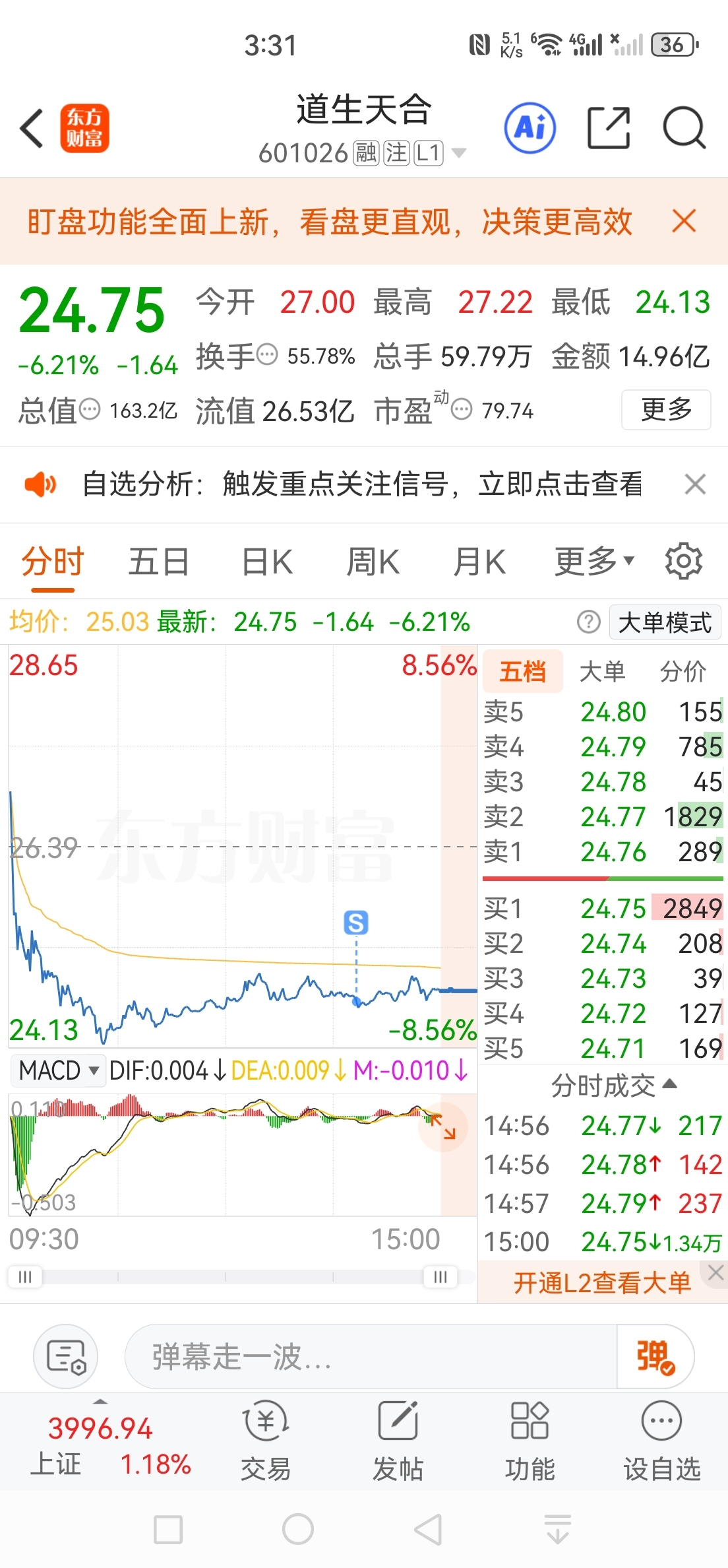 $道生天合(SH601026)$ 老子走了,你爱咋咋滴,死去吧。狗量化。