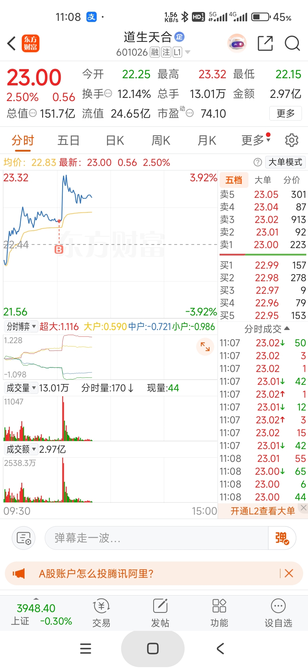 $道生天合(SH601026)$ 大家不要急,我吃完饭1点10分,拉第二波!