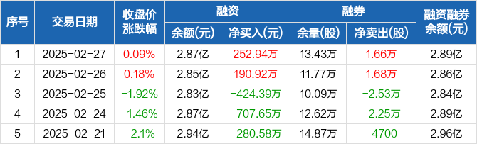 玉龙股份:融资净买入252.94万元,融资余额2.87亿元(02-27)