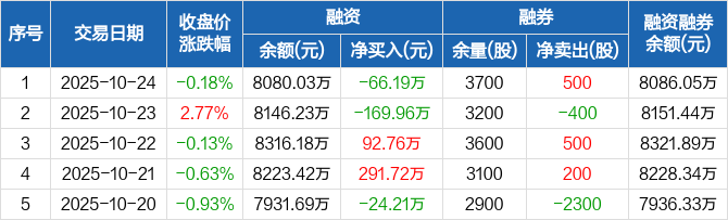 永兴股份:融资净偿还66.19万元,融资余额8080.03万元(10-24)