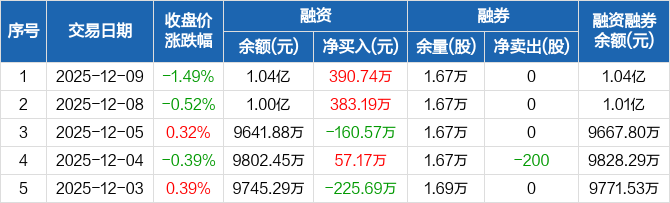 永兴股份:融资净买入390.74万元,融资余额1.04亿元(12-09)