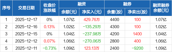 永兴股份:融资净买入429.76万元,融资余额1.07亿元(12-17)