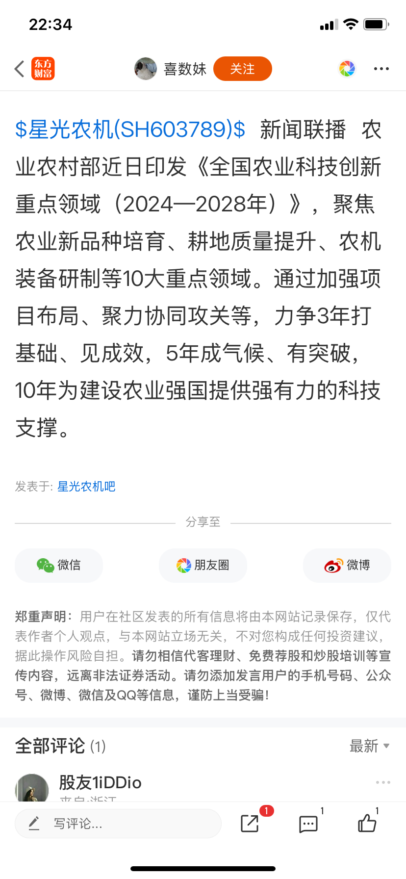 温馨提示: 1.根据《证券法》规定,禁止编造、传播虚假信息或者误导性信息,扰乱证券市场;2.用户在本社区发表的所有资料、言论等仅代表个人观点,与本网站立场无关,不对您构成任何投资建议。用户应基于自己的独立判断,自行决定证券投资并承担相应风险。《东方财富社区管理规定》