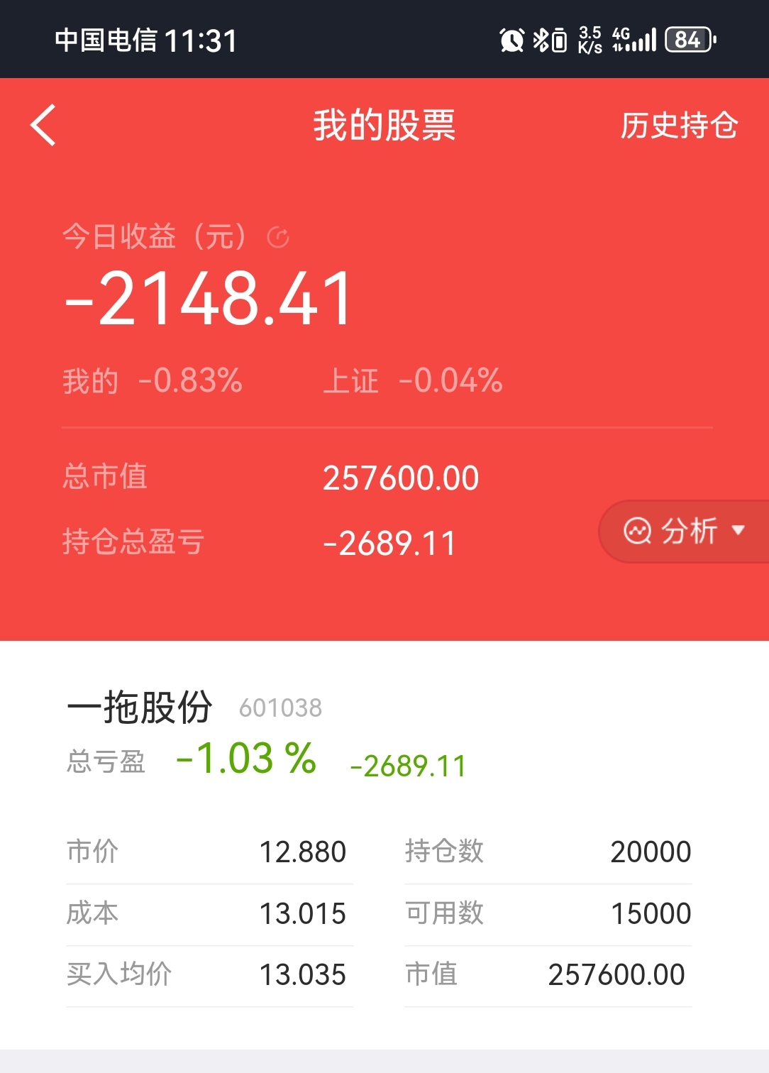 从去年10月跌到现在,跌了13个月了,中间连个像样的反弹都没有,可怜我这个骨灰级