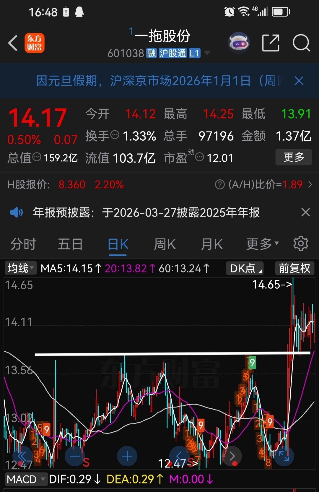 突破平台后震荡3周,没有跌到前平台的上沿13.78,现在20日线也上来了,双重支