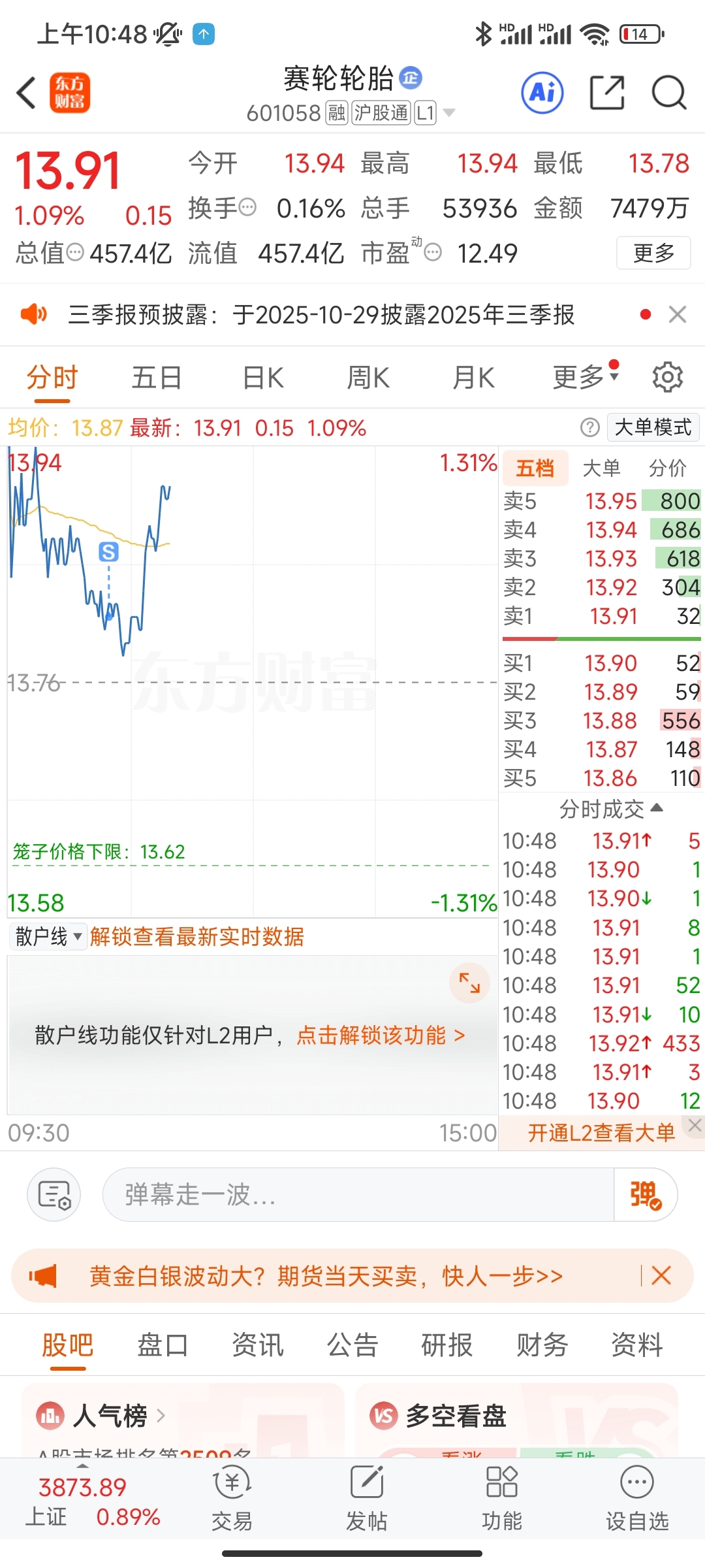 $赛轮轮胎(SH601058)$ 真服了自己,又是一卖就涨