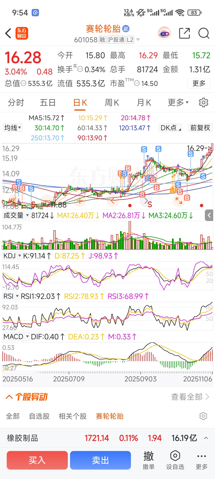 $赛轮轮胎(SH601058)$ 赛轮是个好票,是我不够坚定,如果时光能倒流,我一定好好珍惜