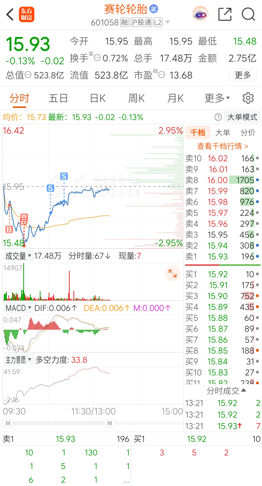 $赛轮轮胎(SH601058)$ 小小的做个T,不贪!