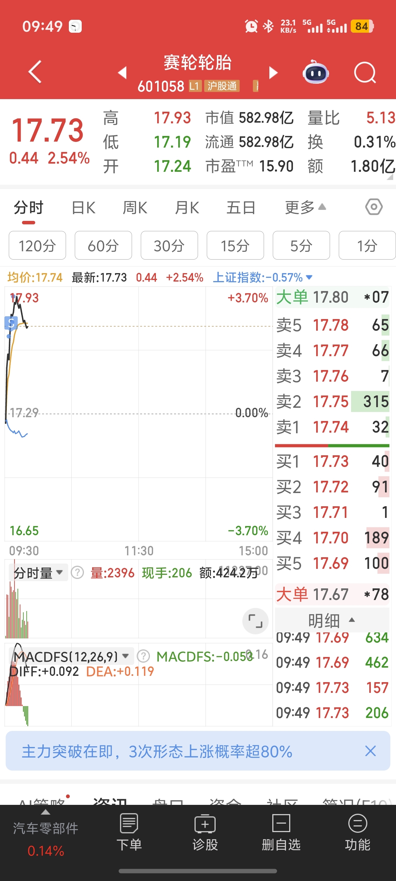 本季度卖了不到20%,再涨还卖,这几年来在赛轮里面坐过山车坐的够够的了,不求卖在