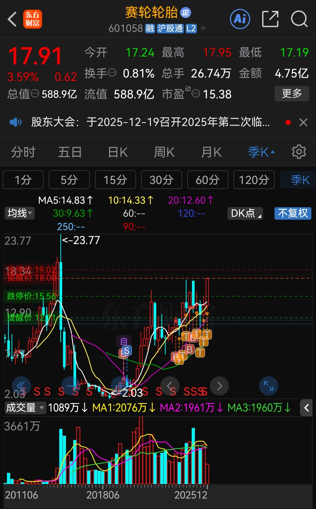 $赛轮轮胎(SH601058)$ 下一个目标23.77