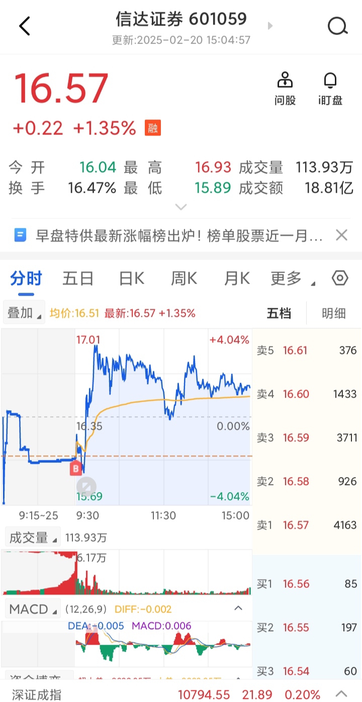 昨天开盘买,今天开盘16.79卖,小赚快5个点,祝留下来的发大财。