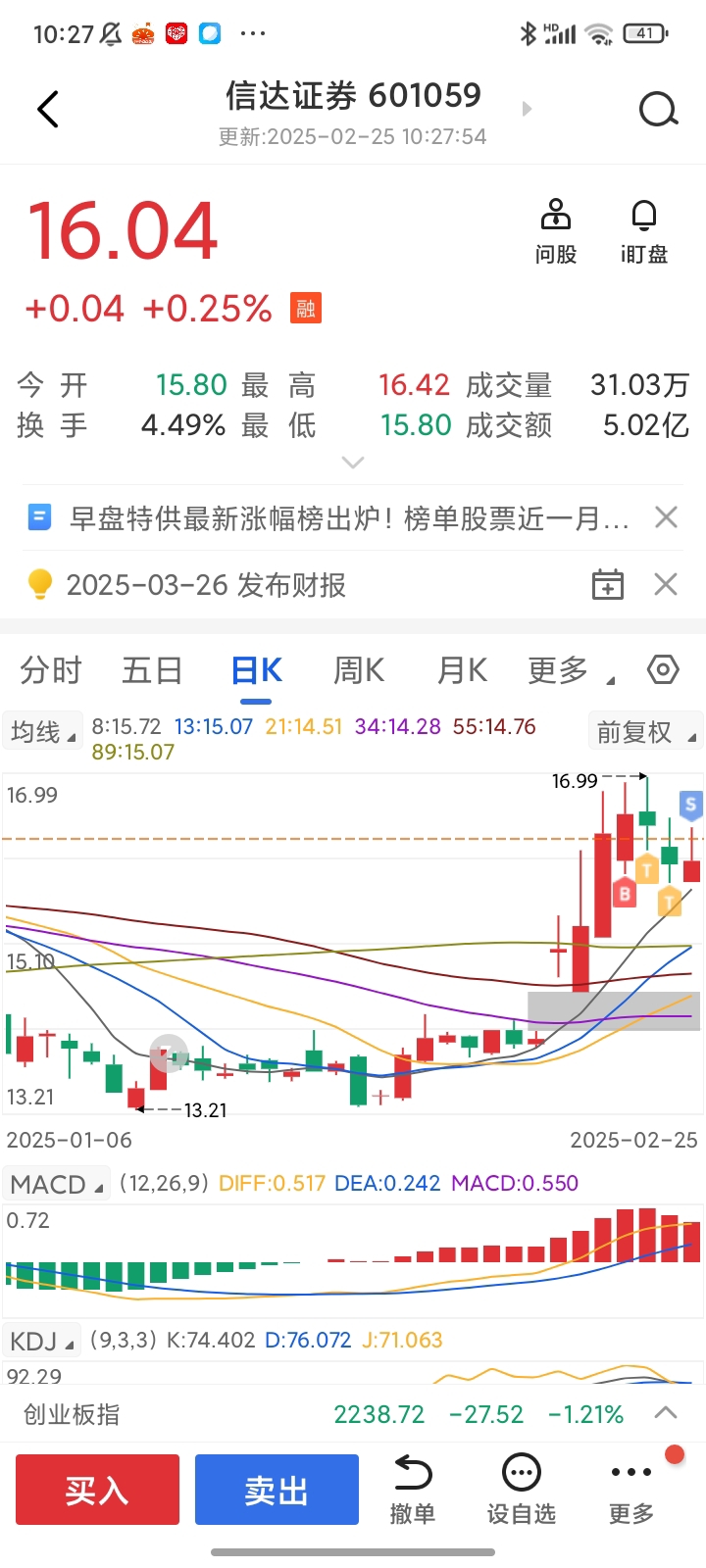 昨天尾盘接回,今天开盘卖。感觉卖飞了。祝留下来的发大财。
