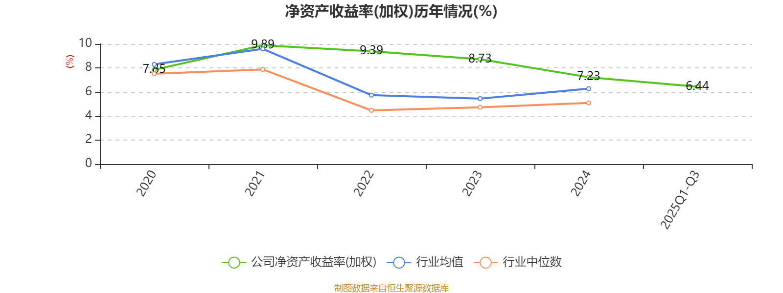 盈利能力方面, 2025年前三季度公司加权平均净资产收益率为6.44%,同比上升1.59个百分点。