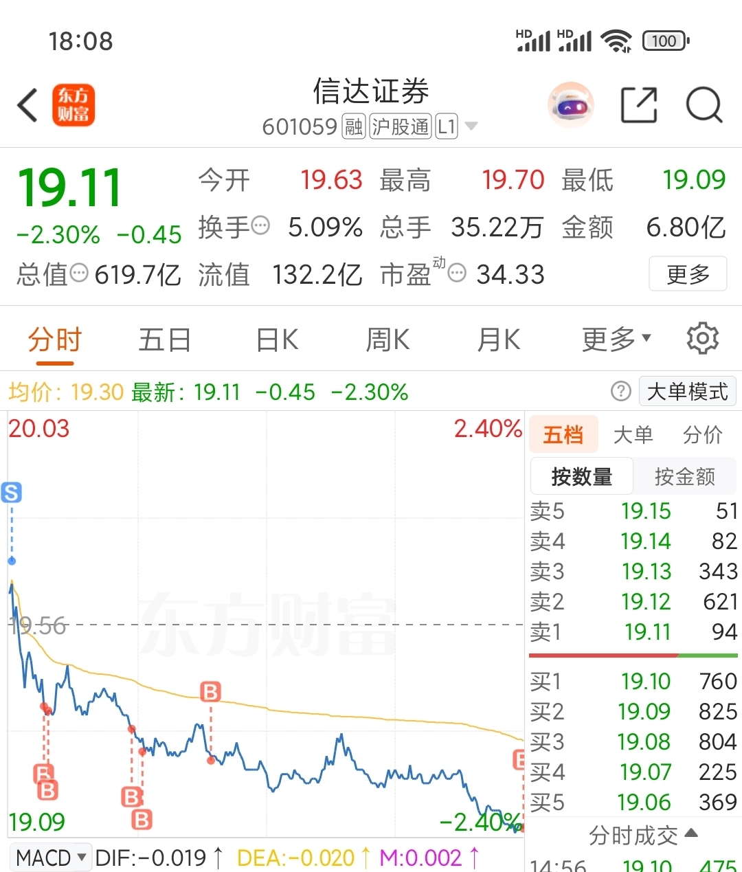 信达两天跌了6个点,那就相当于别的题材个股,跌了十几个点。都跑了是吧,没人买我买