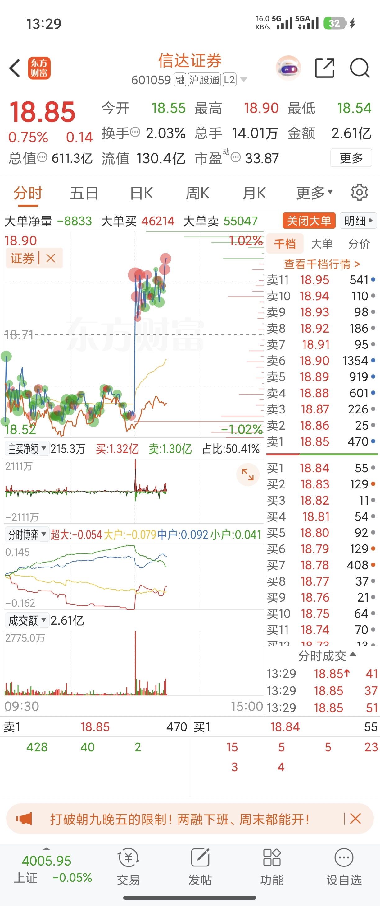 $信达证券(SH601059)$ 从净卖出2000万到净买入了