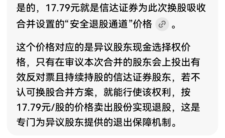这个价格(异议股东现金退股通道价格)是不会浮动的。(仅适合股东大会投反对票的股东才有权限)