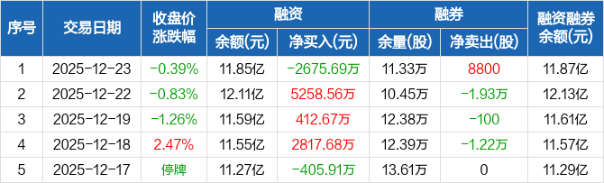 信达证券:融资净偿还2675.69万元,融资余额11.85亿元(12-23)