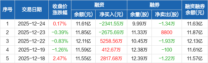 信达证券:融资净偿还2341.55万元,融资余额11.61亿元(12-24)