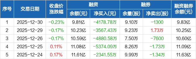 信达证券:连续6日融资净偿还累计2.3亿元(12-30)