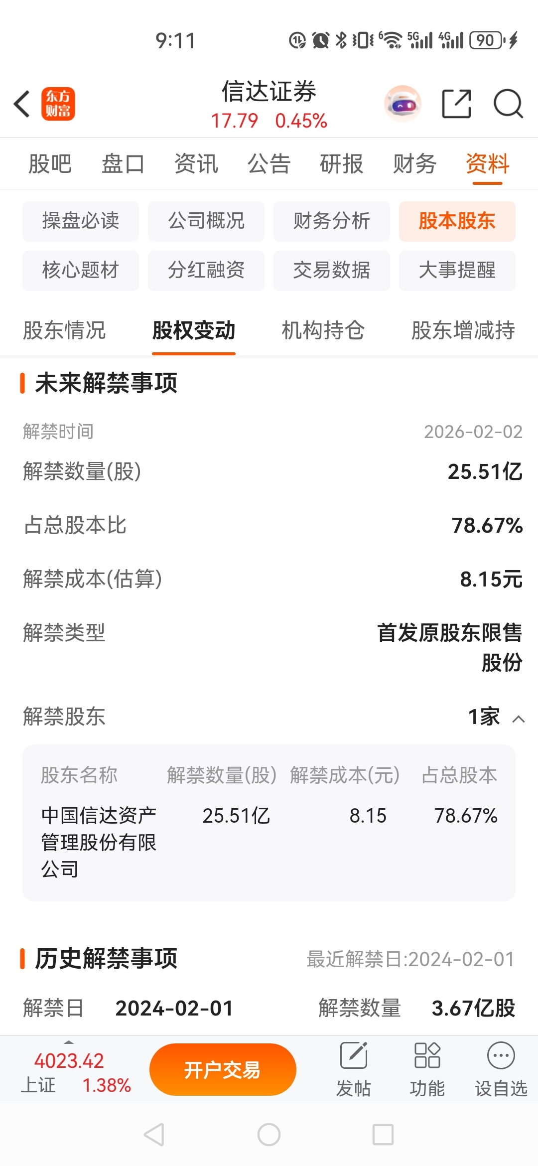 $信达证券(SH601059)$ 央企大股东中国信达持股解禁,不会减持的