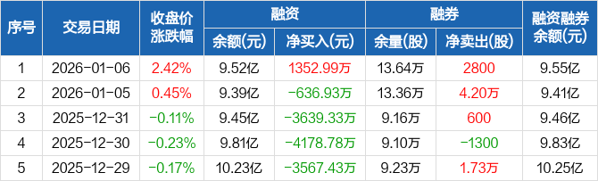 信达证券:融资净买入1352.99万元,融资余额9.52亿元(01-06)