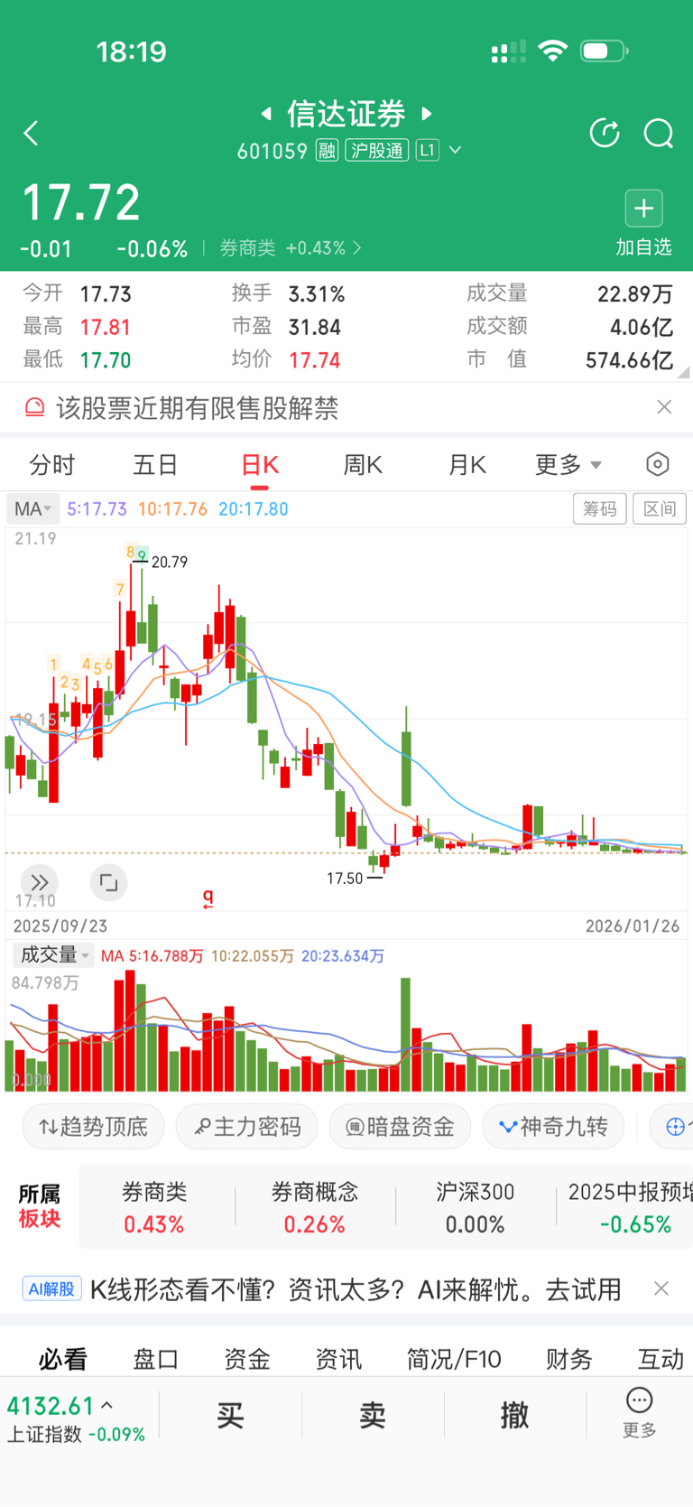 $信达证券(SH601059)$ 谁能跟我解释一下他为什么最近是这种走势呢?