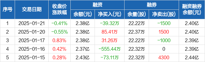 中信金属:融资净偿还39.32万元,融资余额2.38亿元(01-21)