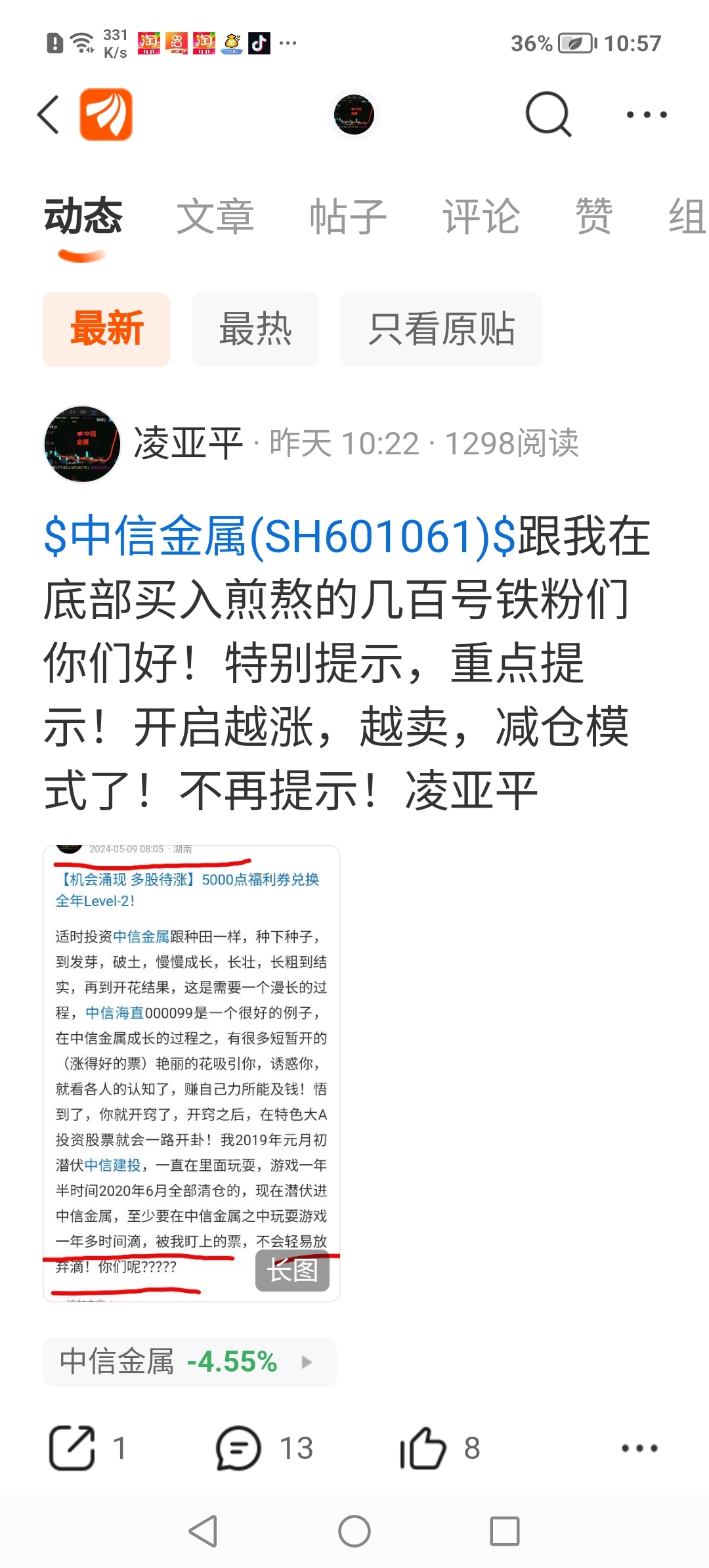 $中信金属(SH601061)$ 我不建议我几百号铁粉跟我玩上升趋势30分钟支撑位做T操作交易!一不小心就会玩坏心态!纯属个人观点,仅供参考