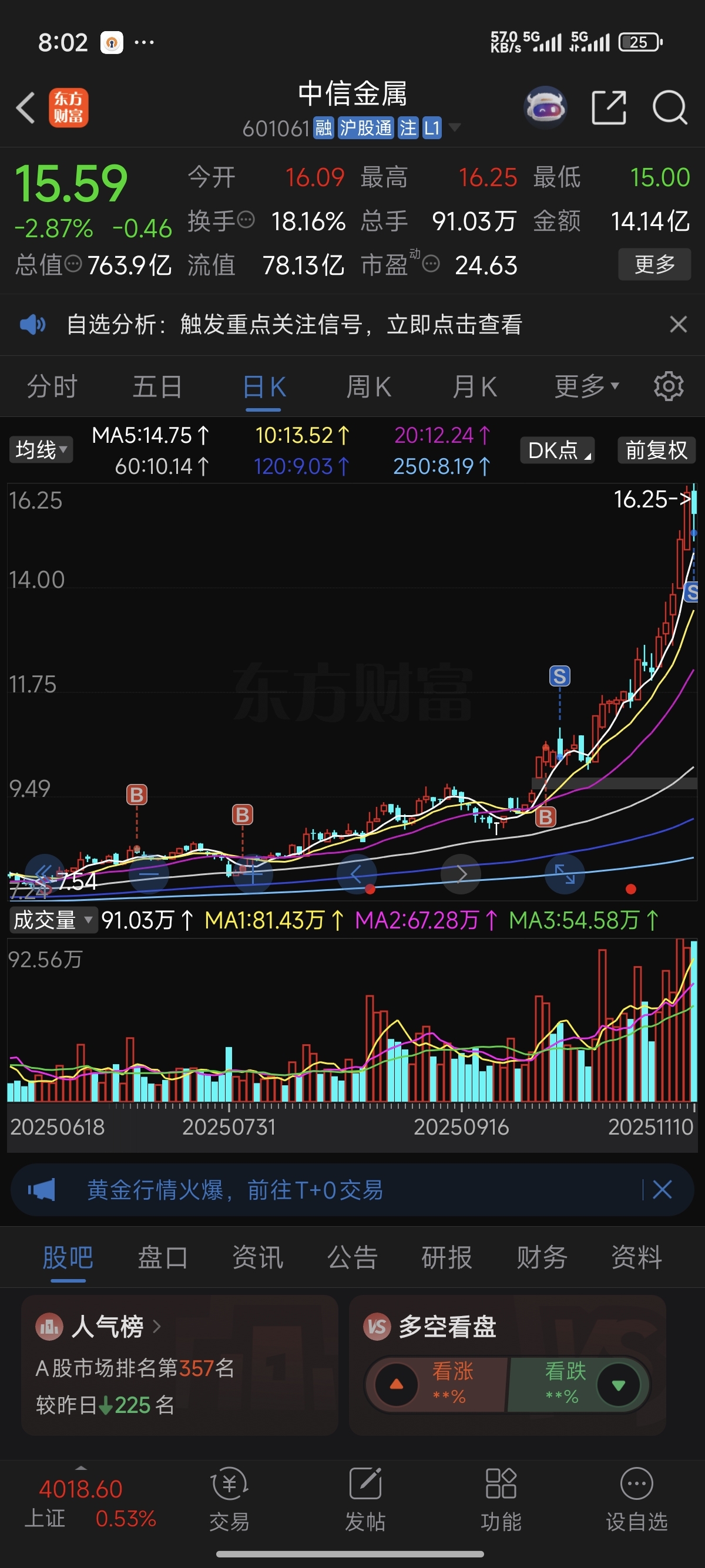 先走了,有缘再见,谢谢你中信金属