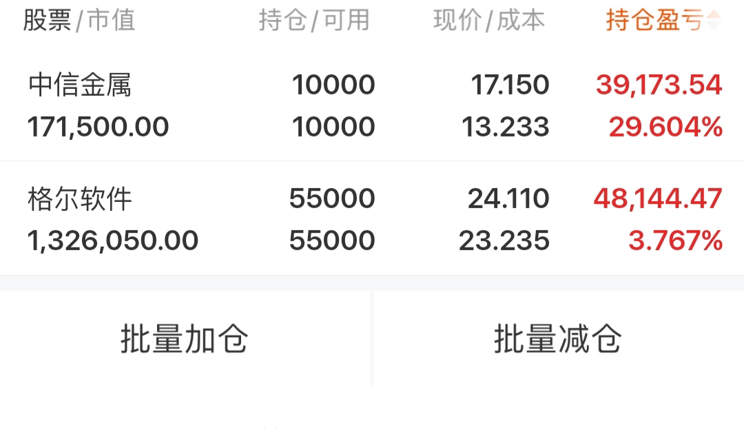 持有:$中信金属(SH601061)$ $格尔软件(SH603232)$