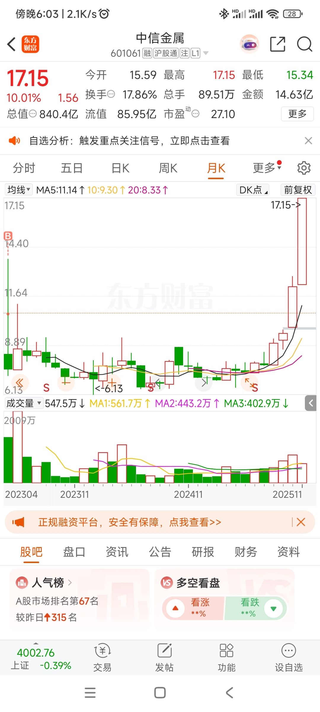 $中信金属(SH601061)$ 只要我不卖就不算亏
