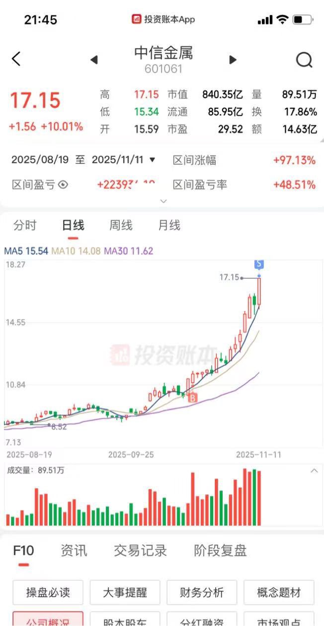 行情,总是在绝望中产生,在犹豫纠结中上行,在疯狂中结束!本周的走势让非常多的人很犹豫迷惘纠结,反过来只能说明行情还会继续大家恐惧的时候,要学会贪婪 大家恐惧的时候,要学会贪婪有一句话:做底不反弹,反弹不做底矿产资源类都会有一个轮流上行新高的过程米国道指新高了,没有我们这边吹嘘的那么差国际黄金调整基本到位了$中信金属(SH601061)$