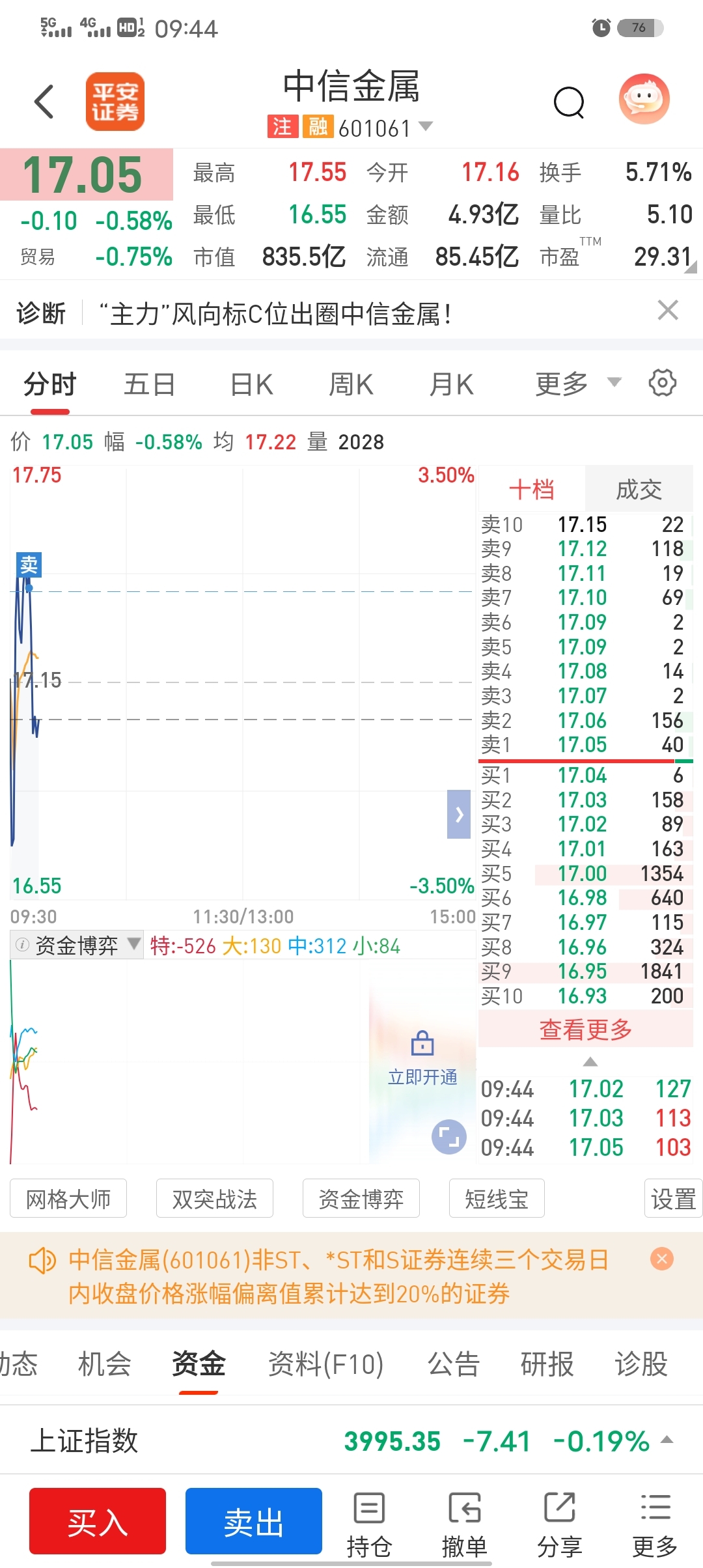 $中信金属(SH601061)$ 拜拜,留下的发财,等回调了再来,最近涨太多了,肯定回调,风险比较高,先走,拜拜。