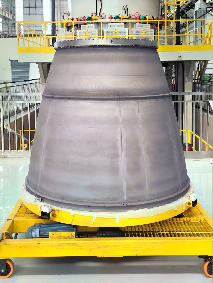 成功完成了国内最大铌合金喷管的发动机试车考核 此铌合金喷管直径约1.6m,高度约1.3m,尺寸远大于国内现有同类型产品,配套国内目前推力最大的真空型液氧甲烷发动机天鹊15A(TQ-15A)