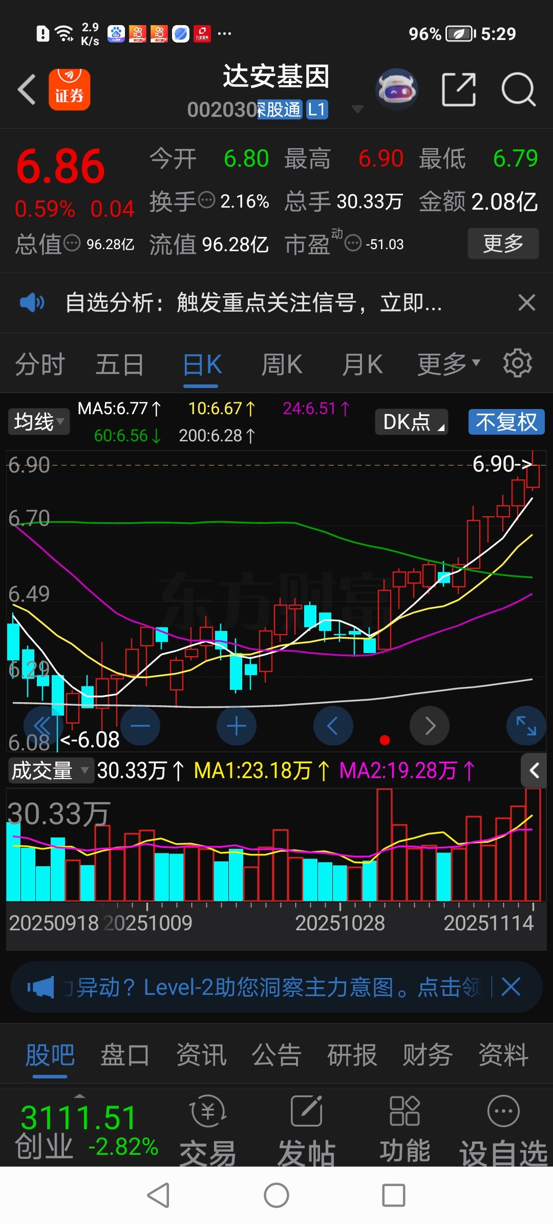 我把中信金属的头像在6块5毛9分换上了达安基因做主仓票!未来择机用中信金属做融资