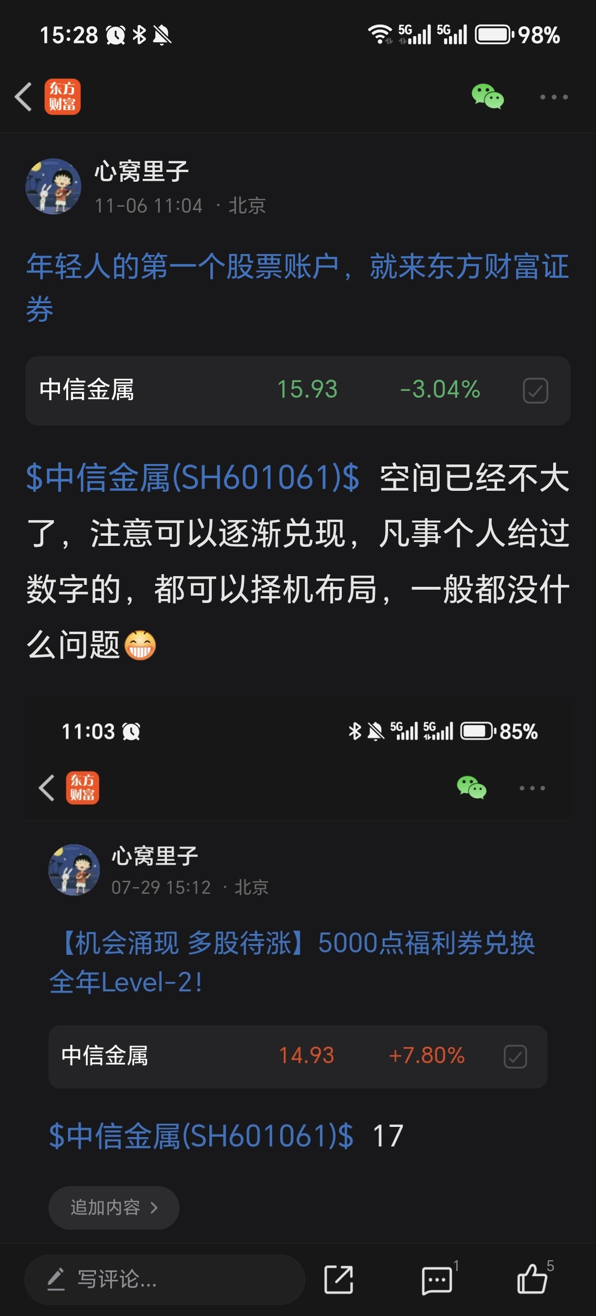 $中信金属(SH601061)$ 为什么到不了18?因为个人说到17!
