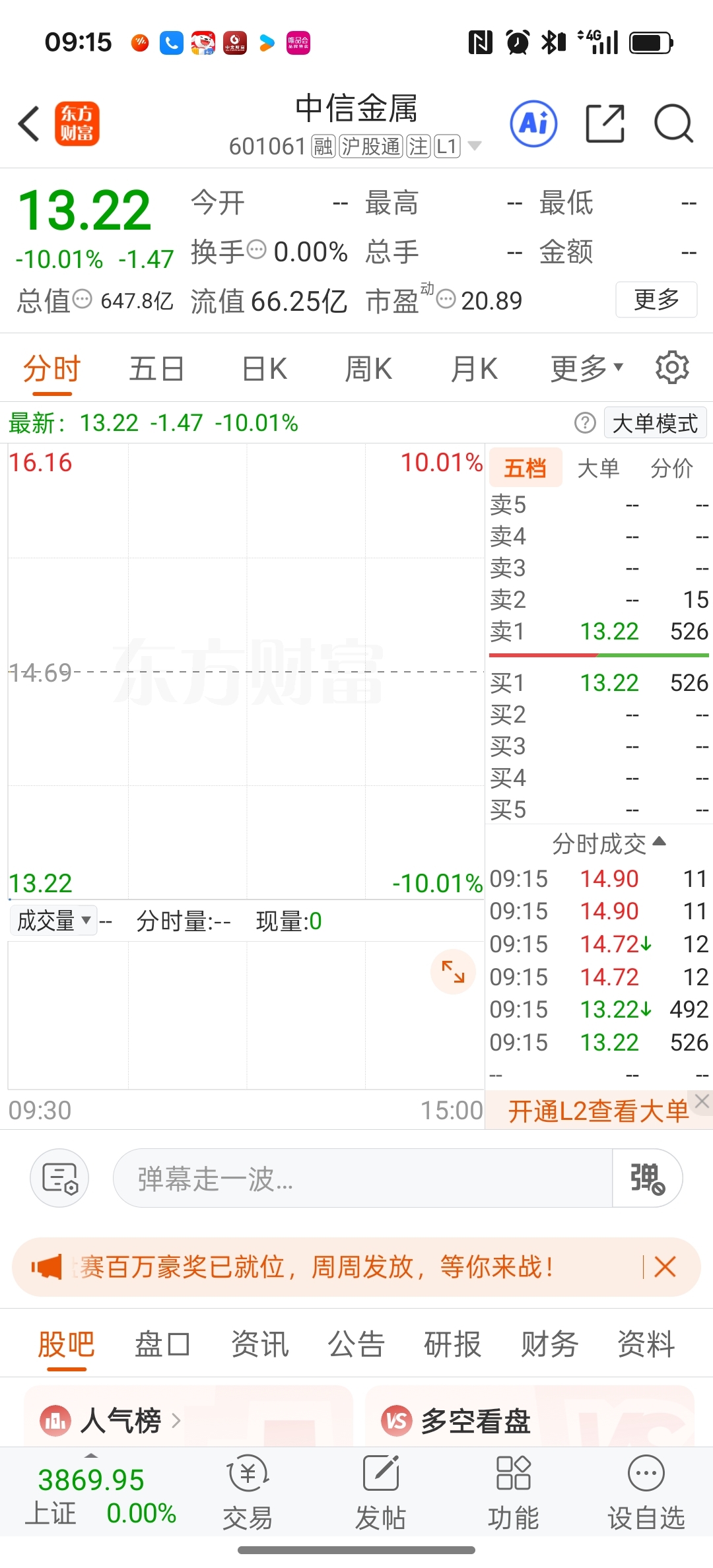 $中信金属(SH601061)$ 忘八有种别撤,老子满仓!!!!