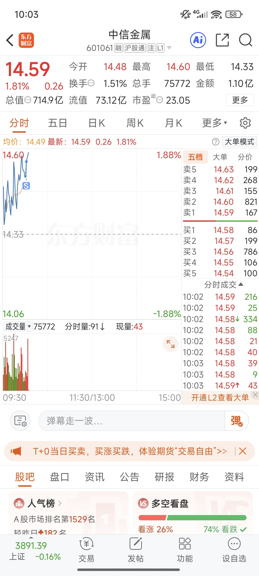 $中信金属(SH601061)$ 我割肉了,不信你今天能涨上去