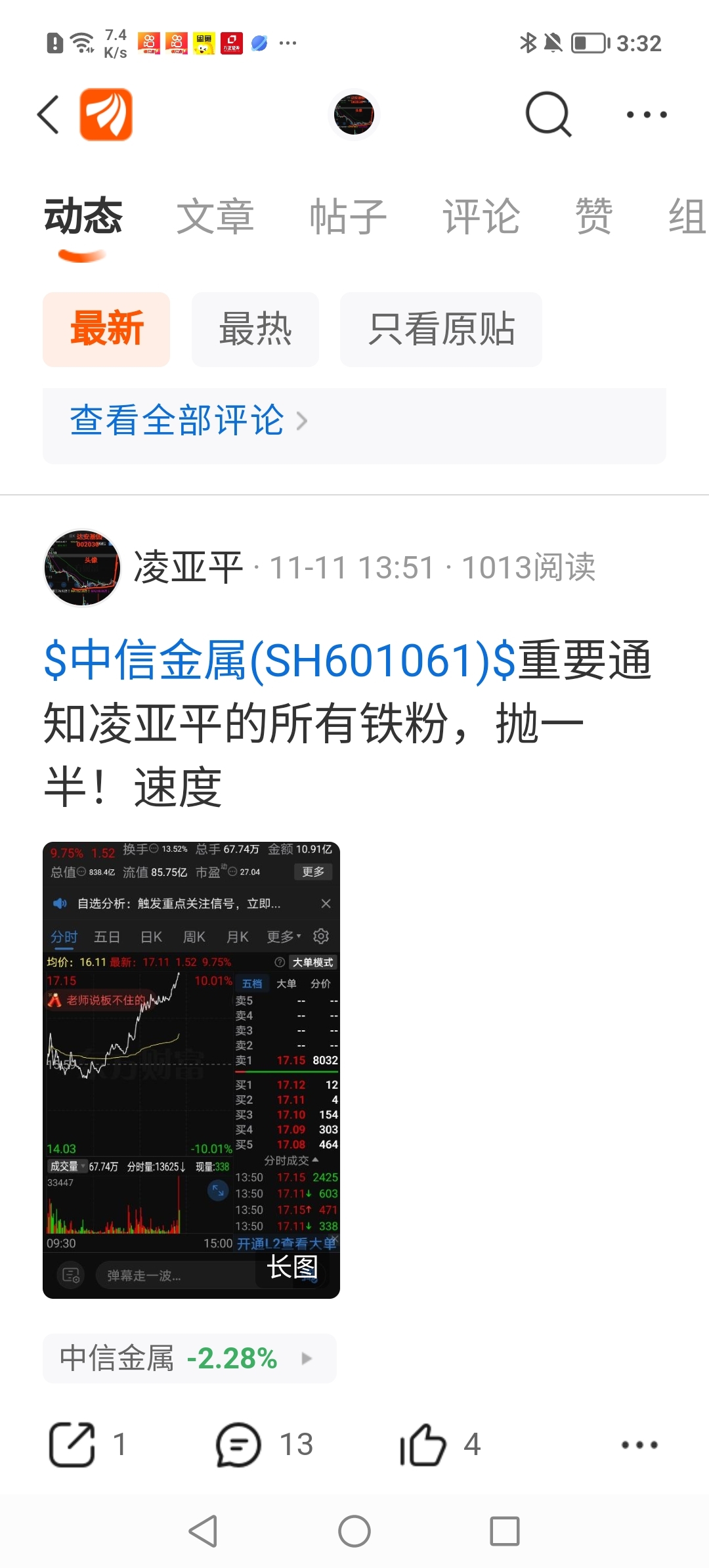 $中信金属(SH601061)$ 唉!为什么不听一个老年人的话呢!