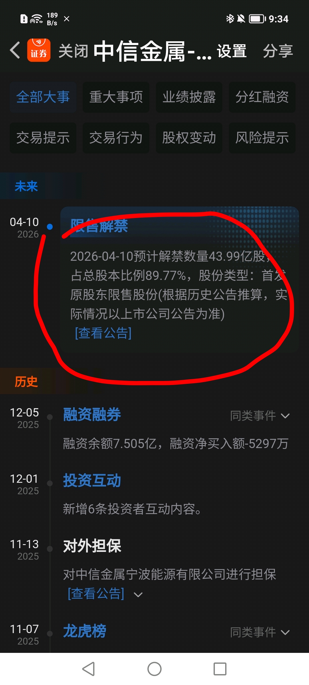 $中信金属(SH601061)$ 限受股流通前一个月不用当心!