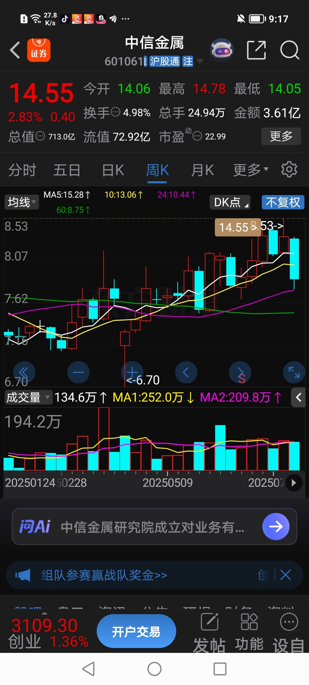 $中信金属(SH601061)$ 现在的东箭科技跟没有大涨第一波段的中信金属主力做局手法类似