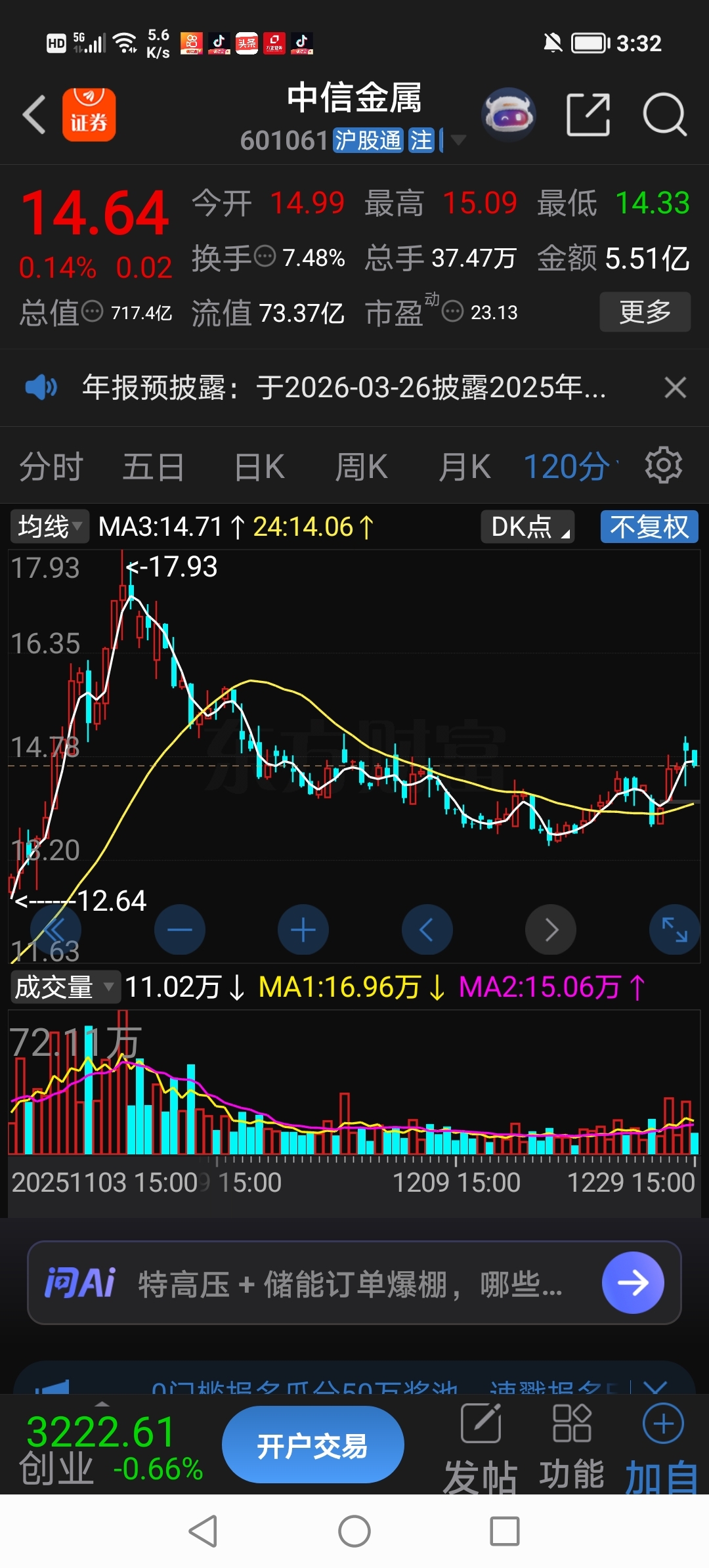 $中信金属(SH601061)$ 湖南白银清了!准备周三买中信金属